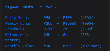 [Check Your VIP Progress] ← See exactly where you standAlready VIP 3? Keep pushing – VIP 4, 5, 6 bonuses are even bigger.